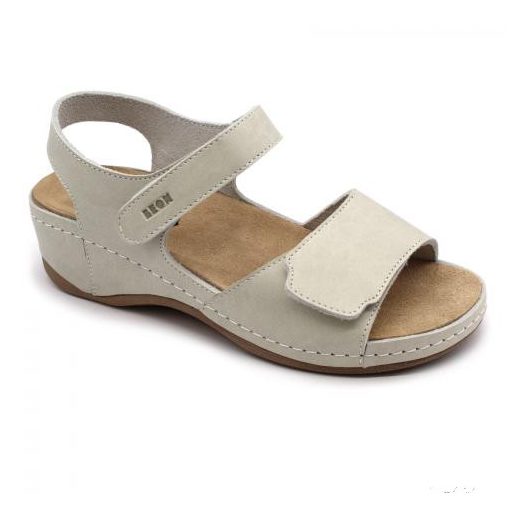 Női nappabőr ( nagyon puha felsőrész ) szandál, műanyag csúszásmentes talppal. A felsőrész mindkét pántja tépőzárral szabályozható. Az anatómiai kialakítású, puha bőr talpbetét kivehető, így bármikor tisztítható és cserélhető. Ajánlott: mindennapos utcai használatra, otthonra vagy munkahelyre ( több órás, szaladgálós munka alatt sem fárad el a láb ).