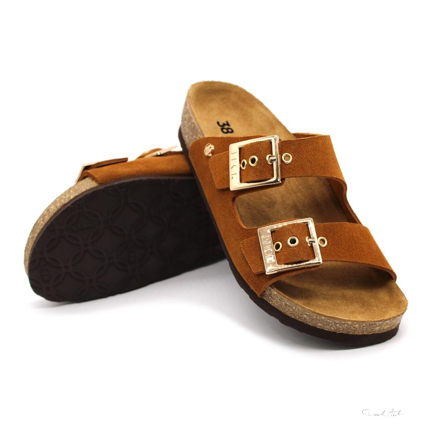 4015 LEON COMFORT NŐI BŐR PAPUCS-barna