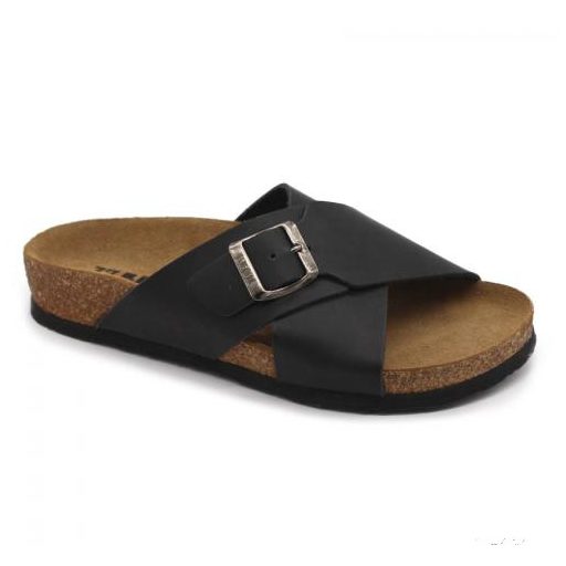 Női nyitott, bőr papucs. A felsőrész, a csatnak köszönhetően, a lábhoz igazítható. A talp anatómiai kialakítású parafa, puha velúrbőr talpbetéttel és habszivacs alsó résszel. Ajánlott minden napos otthoni vagy utcai használatra, könnyű nyári sétára ( több órás gyaloglás után sem fárad el a láb ).