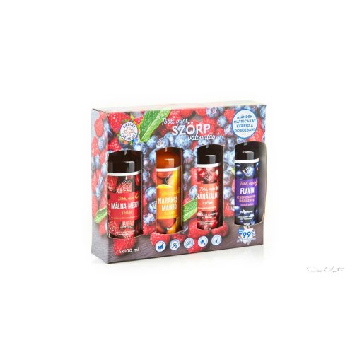 Málna-meggy szörp (100 ml), Narancs-mangó szörp (100ml), Gránátalma szörp (100 ml), Flavin szörp (100 ml)