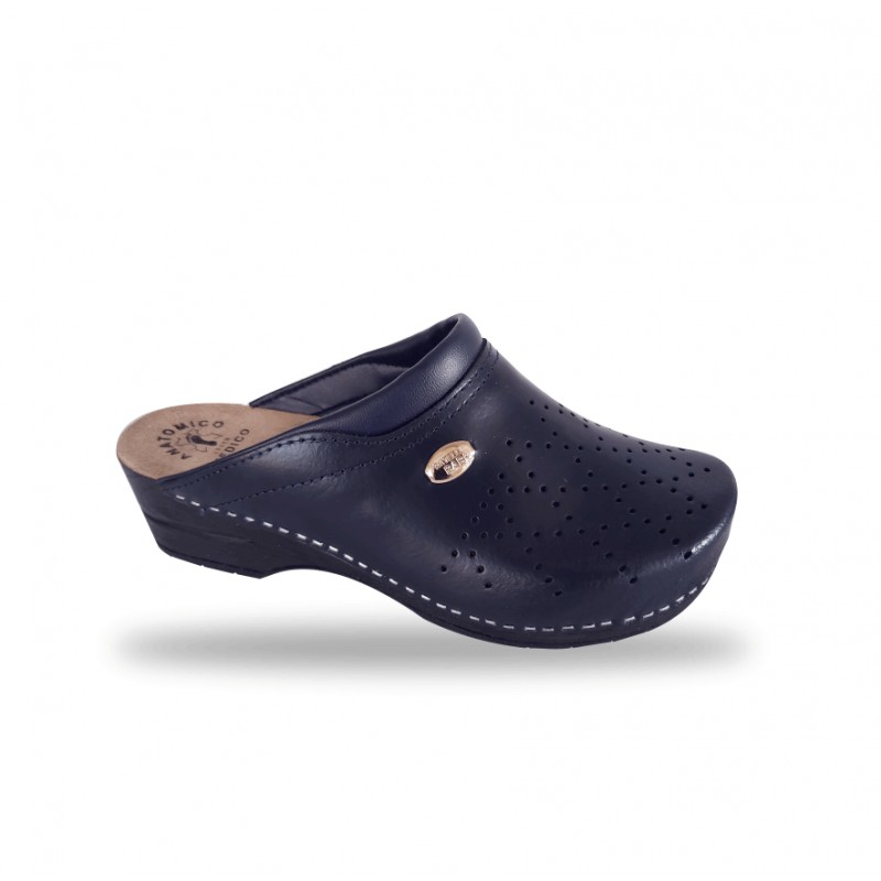 Népszerű fazon a Fratelli Babb kényelmi klumpa kollakcióból. Komfort papucs, melynek bőr felsőrésze az apró lyukacsokon keresztül biztosítja a megfelelő szellőzést. A felsőrész ívébe varrt puha rüsztkímélő párna védi a lábfejet a kidörzsölődéstől. A finom crosta bőr talpbélés és az anatómiai formatalp hosszú távon is kényelmes viseletet biztosít. A talp anyaga rugalmas polyuretán, mely tompítja a talajra érkező koppanó hatást. Az alsó talpba illesztett csúszágátló gumírozott betétekkel a járás stabilabbá, biztonságosabbá válik. Így nem csak otthonra, hanem munkába is kiválóan alkalmas. Csinos, komfortos, zárt papucs, kiváló ár-érték aránnyal.