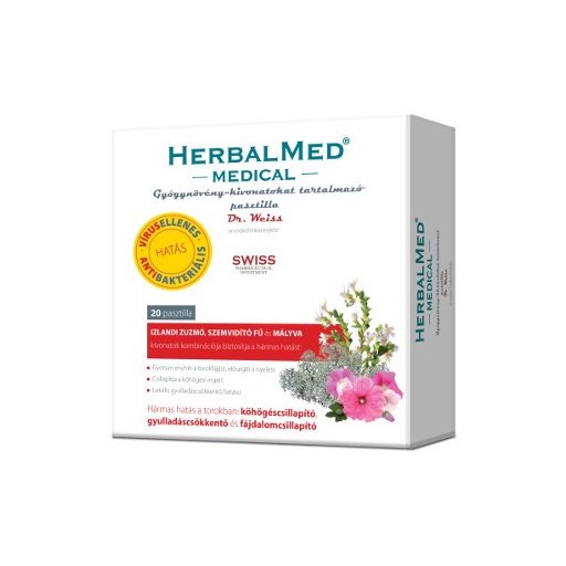 Izlandi zuzmó-kivonat 100 mg, szemvidító fű-kivonat 20 mg, mályva-kivonat 20 mg, C-vitamin 30 mg, segédanyagok: glükóz-szirup, méz, mentol, fenyőolaj, szibériai fenyőolaj, ánizsolaj, csalán-kivonat, természetes aroma: ananász-, narancs-aroma, citromsav (E330), víz, színezékek: réz-komplex, klorofi ll (E141), kurkumin (E100).