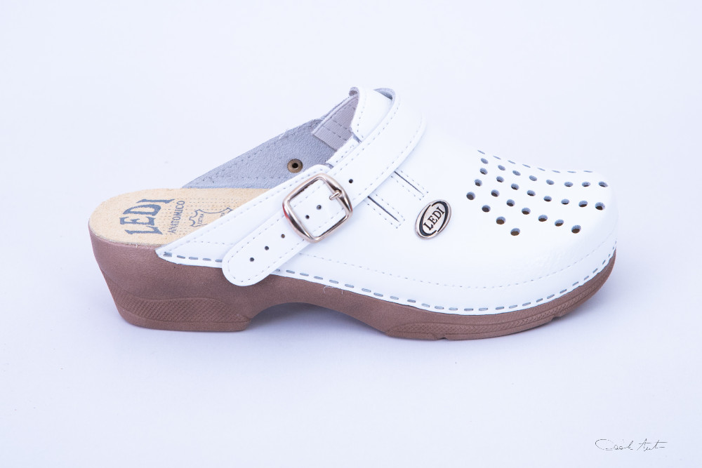 LEDI Anatomic | Női bőr klumpa 552/18 | fehér | gumis lábfej betét + hátrahajtható pánt