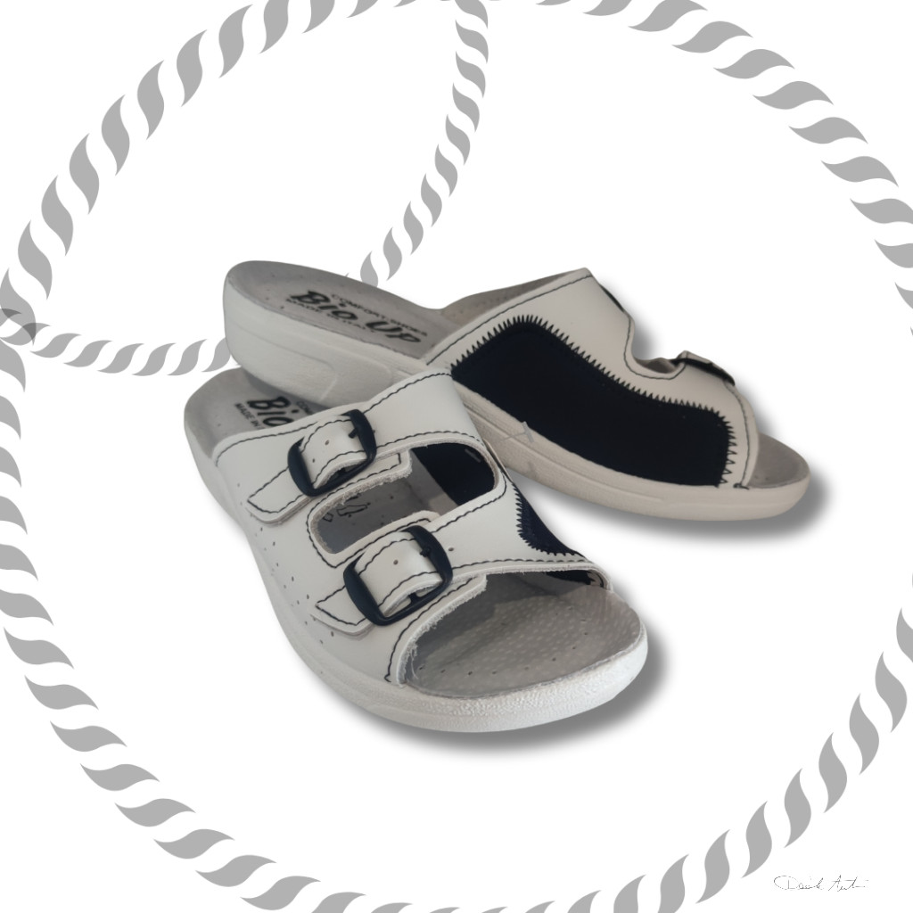A papucs anatómiailag kialakított talpbetéttel és bütyökvédő résszel rendelkezik, így: