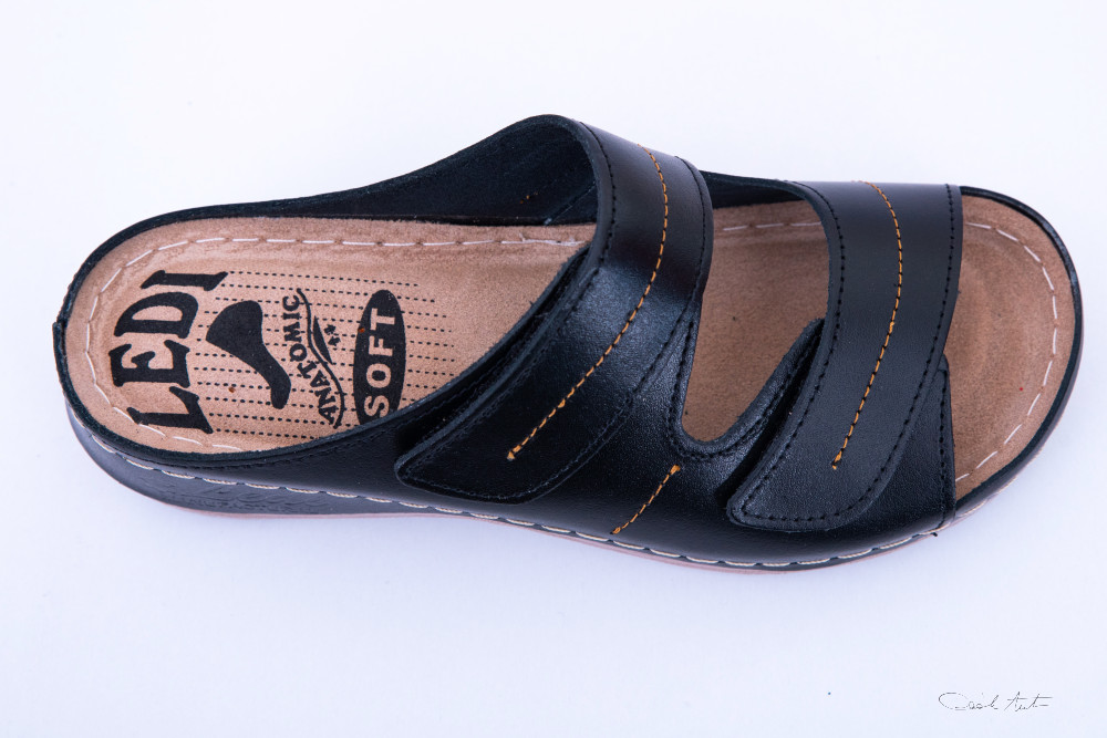 LEDI Anatomic | Női bőr papucs 434/10 | fekete| tépőzáras | munkavédelmi is,csak 39-es méret