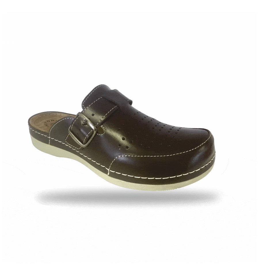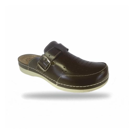 Ez a modell a Fratelli Babb férfi kollekció egyik legkényelmesebb zárt papucsa. Felső része lyukacsos kialakítású, mely biztosítja a megfelelő szellőzést. A bőr talpbélés alatt kialakított boltozati alátámasztás és a hullámos szivacsos talpágy különösen kényelmessé teszi a papucsot. Egészségügybe, munkahelyi viseletként, álló munkát végzők számára is kiválóan alkalmas.